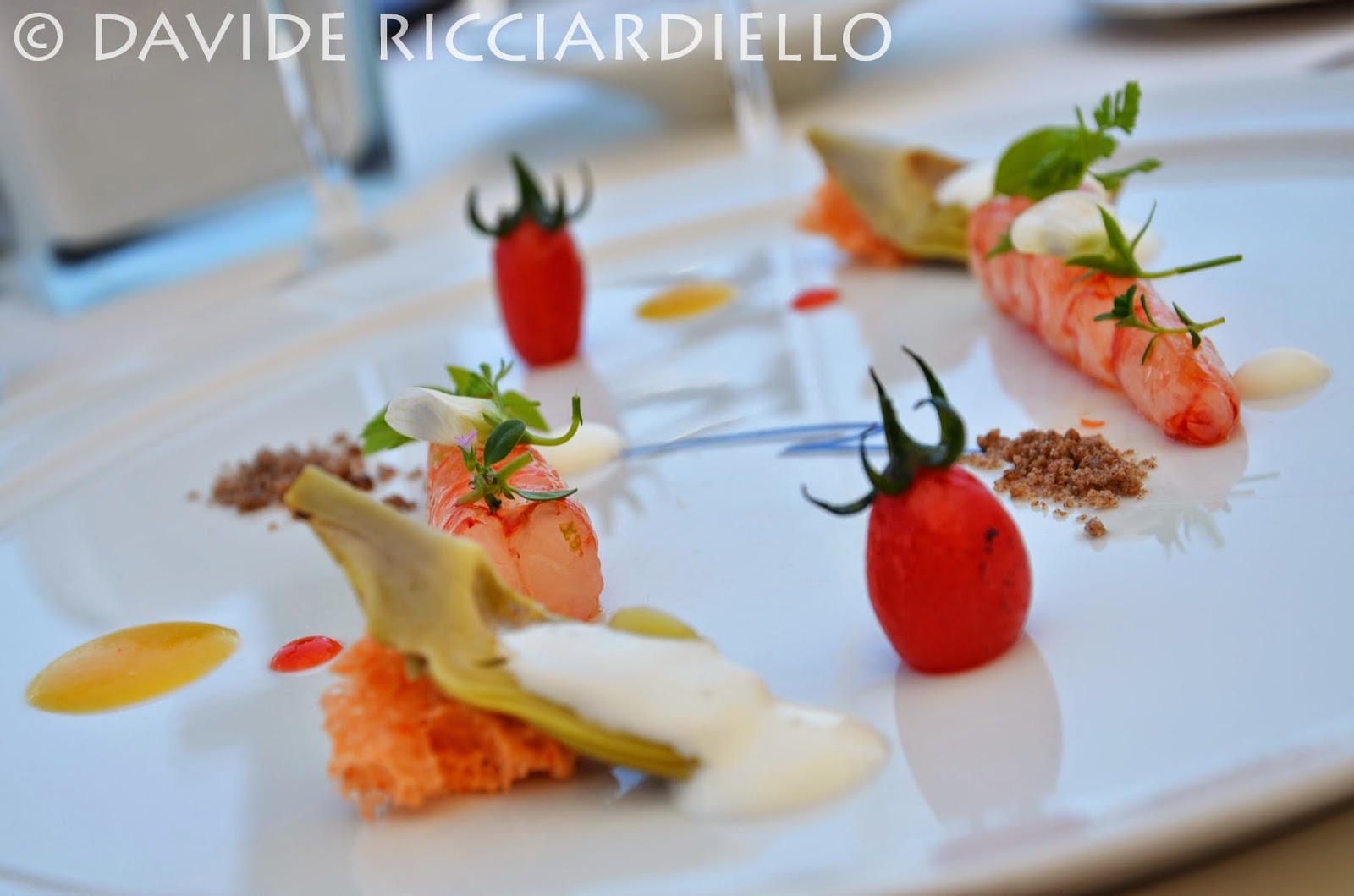 RIASSUNTO: ostrica, mojito e passion fruit (inaspettata la sinergia tra gli elementi, nonostante i sapori siano ben distinti); pomodoro, pane alle alici e mozzarella (delicatissimo; la bolla di mozzarella si scioglie in bocca e rende merito all'ideazione del piatto); insalatina di gambero con carciofo, polvere di liquirizia, burrata e spuma all'arancia (il carciofo ha bella consistenza e gran sapore; la burrata dà quel bel tocco di morbidezza; i crostacei sono insaporiti con garbo); variazione di quaglia: macaron di fegatino, bon bon, coscia avvolta nel lardo con pane saporito, petto e uovo, salsiccia (il macaron è un po'troppo biscottoso; il bon bon rincuora subito; la coscia spicca in sapore; la pseudo-Bismarck un'intuizione magnifica; la salsiccia un finale rassicurante; il cappuccino di lenticchie servito per inframezzare le proposte è sfizioso e andrebbe apprezzato a se'stante); risotto mantecato con acqua di pomodoro e olio d'oliva, gel di pomodoro, crudo e cotto di mare, tonno, taratufo, gambero, caviale, capasanta e aria al basilico (il gambero è burroso e interessante nel retrogusto; cottura e mantecatura del riso sono smaglianti, ma l'affumicatura è un po'invasiva, anche se il pomodoro aiuta a mitigare la sensazione); raviolo farcito con aglio, olio e peperoncino, vongola cruda e spuma di mare (un piatto memorabile: l'entrata in bocca è rinfrescante per merito della spuma, che prepara all'invasione del ripieno liquido di aglio, olio e peperoncino prorompente sulle papille gustative; è forse l'unico caso in cui mi piacerebbe la sfoglia un velo più doppia per ricordare al meglio la consistenza della ricetta classica con gli spaghetti); pancetta di tonno cotta a bassa temperatura, melanzana fondente, maionese calda ai capperi, gelato alla cipolla di tropea (spiazzante: sembrerebbe un'accozzaglia di sapori caoticamente costruita come un quadro di Jackson Pollock, ma rivela sorprendentemente una coerenza ineccepibile; interessante più che gustosa); coniglio arrosto con crema di pinoli, cagliata di bufala, spinacino all'uvetta, pomodori glassati, riduzione al marsala (un piatto estremo; è vero che mare e terra sono ben assemblati, ma la mancanza di contrasto rischia di rendere il piatto alla lunga stucchevole e sovraccarico di sapore; tecnicamente è tuttavia notevole); zuppetta all'arancia, conetto farcito con ricotta di bufala, gelato al babà (esteticamente appagante); mousse di ricotta di bufala, inserimento al pomodoro, gel di basilico, biscotto agli agrumi, gelato alla mandorla, crema al passito di Pantelleria (un dessert come piace a me: fresco, non troppo dolce, ma piacevole e di splendida chiusura); pani eccellenti; cantina da ampliare per seguire ancor meglio la complessità dei piatti di cucina; personale molto cordiale e professionale; location e ambiente senz'altro ammalianti.
